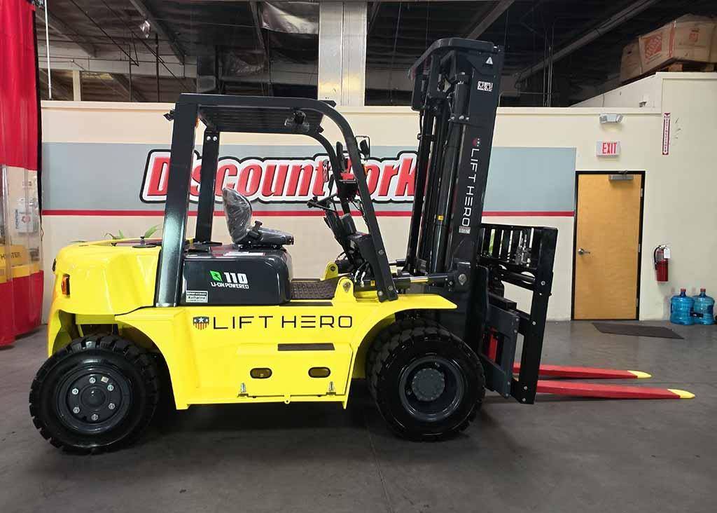 Equipment Description: Video https youtu be coxOlp3JIXI si YaxHCl-o7sDL0tfy Operators are dubbing LIFT HERO lifts the Tesla of forklifts thanks to our cutting-edge lithium-ion battery technology These batteries require no maintenance and allow for opportunity fast charging ensuring your lift can last an entire shift without interruption With completely sealed electrical components an 18-month or 2 000-hour factory warranty and a robust 5-year or 10 000-hour battery warranty you can count on efficiency and minimal downtime on the job site For added safety our forklifts are painted in bright luminous yellow with red-painted forks to enhance visibility Experience the revolution in material handling with LIFT HERO