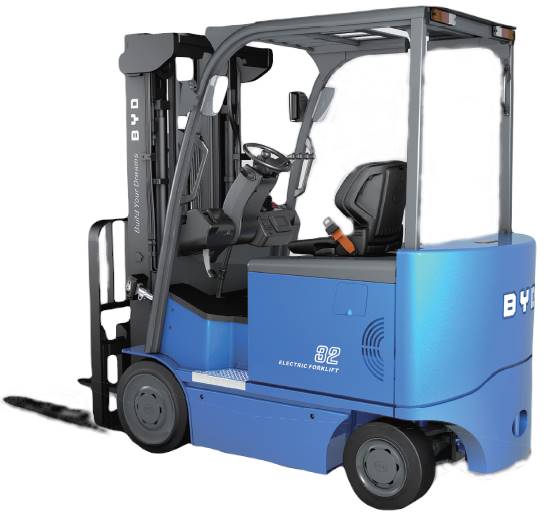 Equipment Description: 10-Year Warranty Charge 1-hr Drive 7-hr 80-Volts Propane Performance Use Outdoors or Indoors 110-Volt Charger LiFePO4 1 10th The Cost No Battery Maintenance SoCal HQ Mfg 500k sqft Mfg by BYD Build Your Dreams