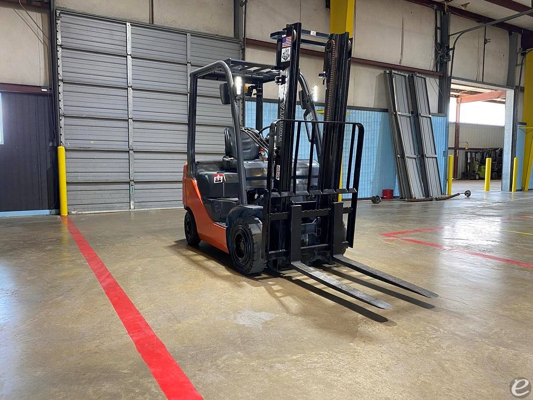 Equipment Description: General Specifications Manufacturer Toyota Model Number 8FGU15 Type Forklift Subtype Pneumatic Tire 4 Wheel Sit Down Fuel Type Natural Gas Dimensions Overall Length 82 inches Overall Width inches Overall Height to Top of Overhead Guard 82 inches Wheelbase 51 inches Ground Clearance 3 5 inches Weight Approximate Operating Weight lbs Performance Load Capacity lbs Load Center 24 inches Travel Speed max miles per hour Lifting Speed feet minute Lowering Speed 98 feet minute Turn Radius 75 inches Engine Engine Type 4Y-ECS Power 51 horsepower atRPM Number of Cylinders 4 Displacement cubic inches Transmission Transmission Type Powershift Number of Speeds 1 forward 1 reverse Tires Tire Type Pneumatic Front Tire Size 6 50-10-10PR Rear Tire Size 5 00-8-8PR Brakes Service Brake Hydraulic Parking Brake Mechanical Hand-operated Steering Steering Type Hydrostatic Power Steering