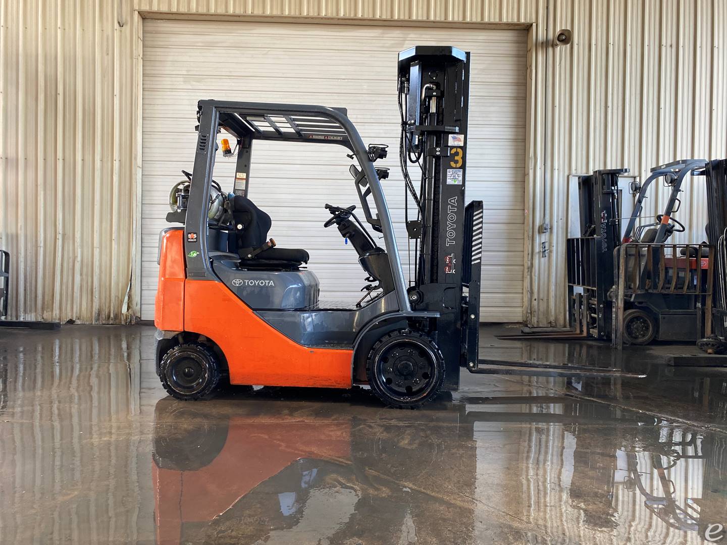Description: General Information Model 8FGCU20 Manufacturer Toyota Type Forklift Fuel Type LPG Liquid Petroleum Gas Operator Type Seated Rider Dimensions Overall Length Approximately 10 feet Varies with fork length Overall Width 3 5 feet Overall Height Cab 7 5 feet Wheelbase 5 5 feet Ground Clearance 4 inches Capacity Load Capacity lbs Tilt Angle 6 degrees forward 8 degrees backward Engine Engine Type Toyota 4Y engine Horsepower 51 HP Engine Displacement cubic inches Performance Travel Speed mph Lifting Speed laden 98 feet min Lowering Speed laden 98 feet min Gradeability laden 23 Tires Tire Type Cushion Front 21 x 7 x 15 inches Rear 16 x 5 xinches Brakes Service Brake Hydraulic Parking Brake Hand-operated mechanical