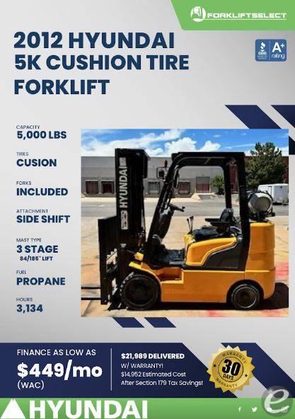 Equipment Description: HYUNDAI 25LC-7 5K 3 STG SS LPG FORKS ONLYHOURS