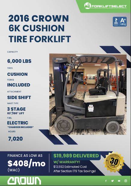 Equipment Description: CROWNCAPACITY 3STG 83 180 SIDE SHIFT ELECTRIC FORKS AND CHARGER INCLUDED