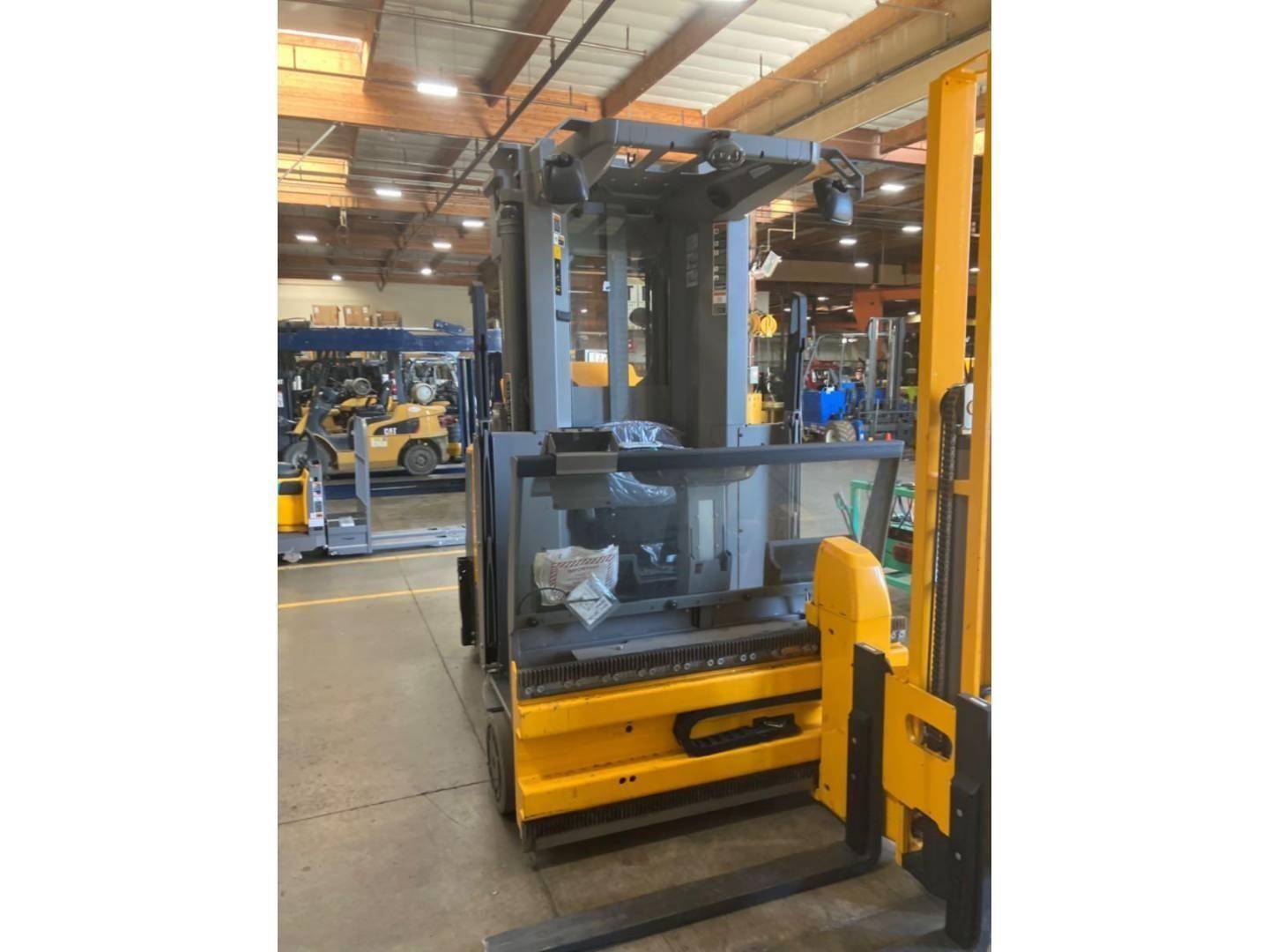 Equipment Description: 3000 CAP 80V MAN UP TURRET 177 107 MAIN MAST W 70 AUX LFT MAST DISASSEMBLED SIDESHIFT ATT 4 BATTERY ROLLERS SINGLE TRAY CRANE ARM 4PALLET DRIVE DIR B12 WIDTH OVER AXLE B2 63 1600 MM SINGLE HAND OPERATION IN AISLE ADDITIONAL LIFT CUT-OUT W OVRIDE ADDL DRIVE LIMIT W OVERRIDE AUDIBLE WARNIN SIGNAL FOR MOTION FLOOR SPOT LOAD DIRECTION BLUE FLOOR SPOT DRIVE DIRECITON BLUE DC DC CONVERTER 24V 150W REAR VIEW MIRRORS - LEFT RIGHT CLIP BOARD SYNCHRONIZED TRAVERSE OUTSIDE AISLE W FORK FLOOR PRO WIREGUIDANCE IF STD 7KHZ 100MA END OF AISLE CONTROL VIA TRANSPONDERS AREA DEPENDENT TRAVEL SPEEDCONTROL VIA WIRE GUIDANCE FREQUENCY TOGGLESWITCH F1-F2