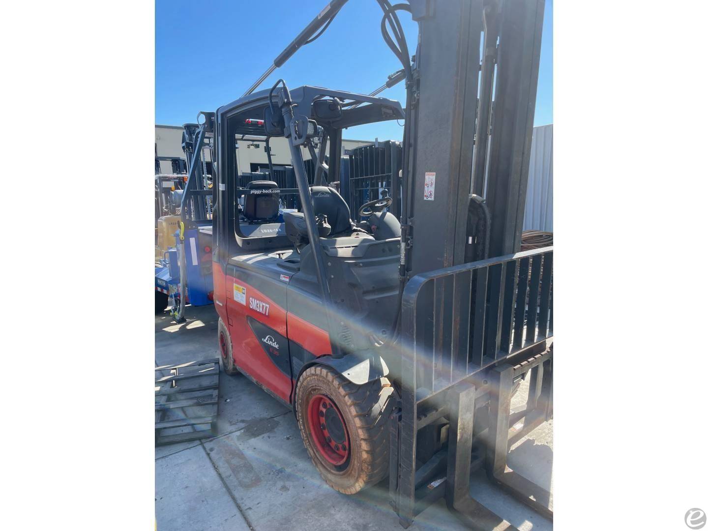 Equipment Description: 7500 ELECTRIC SIT SOWN SINGLE PEDAL NON MARK SE DRIVES AND STEERS SPEED LIMIT 6MPH 217 104 TRIPLEX MAST HANG ON SIDESHIFTER 60 FORKS LOAD BACKREST REAR VIEW MIRROR HEIGHT ADJ STEERING COLUMN SGL FNCT HOSING LED TWIN SPOT LIGHTS REAR LIGHT BLUE LIGHT -REAR BACK UP ALARM STROBE FIRE EXTINGUISHER 80V BATTERY BACKUP ALARM STROBE FIRE EXTINGUISHER