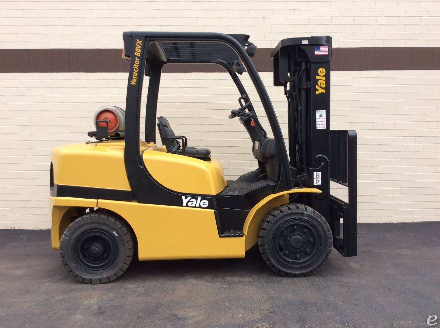 Equipment Description: General Information Model Number GLP080VXNGSE090 Manufacturer Yale Type Forklift Subtype Pneumatic Tire 4 Wheel Sit Down Fuel Type LP Gas Dimensions Overall Length Typically around 12 to 13 feet Overall Width Approximately 4 5 feet Overall Height to Top of Overhead Guard Roughly 8 5 to 9 feet Ground Clearance About 5 to 6 inches Wheelbase Around 6 to 7 feet Capacity Load Capacity lbs Load Center 24 inches Engine Specifications Engine Manufacturer Various commonly PSI or Mazda Engine Type Internal Combustion Steering Steering Type Hydrostatic Power Steering Turning Radius Approximately 9 feet Tires Tire Type Pneumatic Number of Tires 4 Brakes Service Brake Hydraulic Parking Brake Hand Operated Performance Travel Speed Loaded Approximately 12 mph Travel Speed Unloaded Slightly higher than loaded speed Lifting Speed Loaded Around 90 feet per minute Lifting Speed Unloaded Slightly faster than loaded speed Lowering Speed Loaded Usually slower than lifting speed