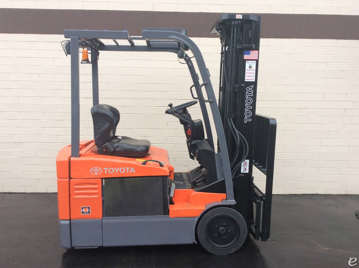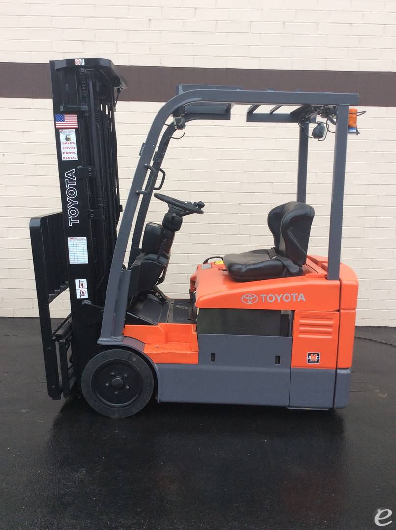 Equipment Description: General Information Model Number 7FGEU15 Manufacturer Toyota Type Forklift Subtype Electric 3 Wheel Sit Down Fuel Type Used Electric Dimensions Overall Length Approximately 9 2 ft varies based on specific configuration Overall Width Approximately 3 3 ft Overall Height without mast Approximately 6 5 ft Wheelbase Approximately 4 9 ft Ground Clearance under mast Approximately 3 5 in Tread Front Approximately 2 7 ft Tread Rear Approximately 2 3 ft Performance Load Capacity Approximatelylbs Travel Speed Approximately 8 mph laden Travel Speed Approximately 9 mph unladen Lift Speed Approximately 59 ft min laden Lift Speed Approximately 98 ft min unladen Gradeability Approximately 20 laden Gradeability Approximately 25 unladen Tires and Wheels Tire Type Cushion Front Tire Size 16 xRear Tire Size 12 x 4-8 Powertrain Motor Type Electric Motor Drive System AC Drive Battery Voltage 48V Brakes Service Brake Hydraulic Parking Brake Mechanical Operator Environment Operator Position Sit Down Steering Hydraulic Power Steering Instrumentation Multi-function Display Seat Adjustable