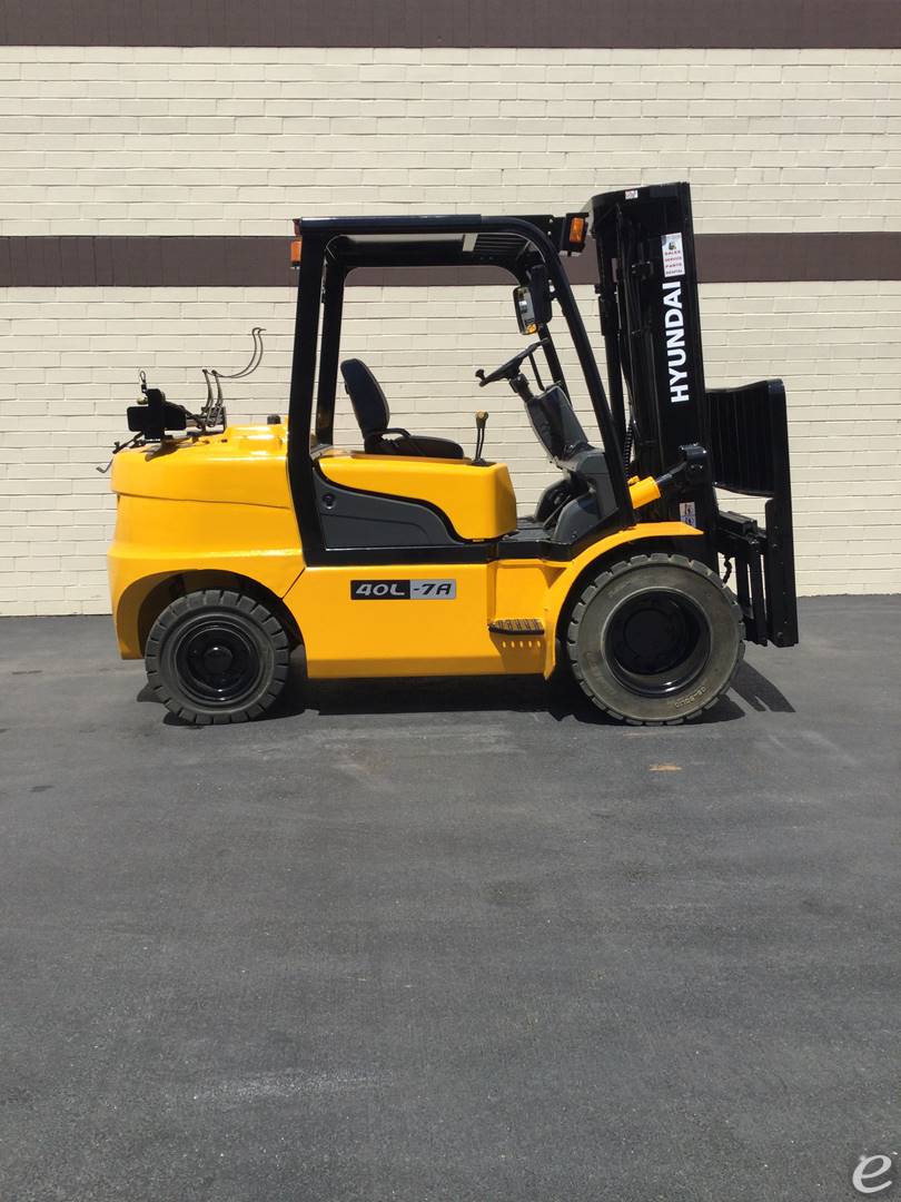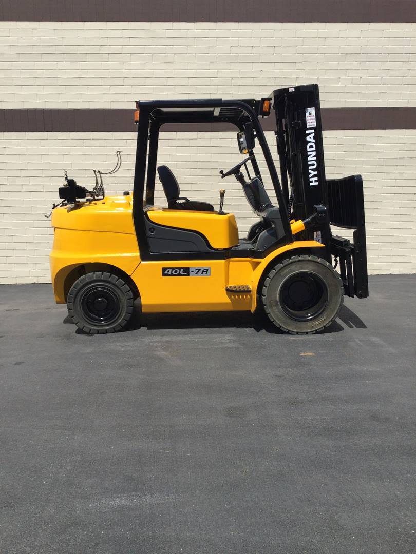 Equipment Description: Manufacturer Hyundai Model Number 40L-7A Type Forklift Subtype Pneumatic Tire 4 Wheel Sit Down Power Engine Type LP Gas Power Output hp approx Capacity Load Capacity lbs Dimensions Overall Length inches approx Overall Width 55 inches approx Overall Height Overhead Guard 87 inches approx Wheelbase 85 inches approx Ground Clearance 6 inches approx Fork Length Varies Performance Travel Speed Loaded 12 mph approx Lift Speed Loaded feet min approx Gradeability Loaded 25 Tires Type Pneumatic Front Rear Weight Service Weight lbs approx
