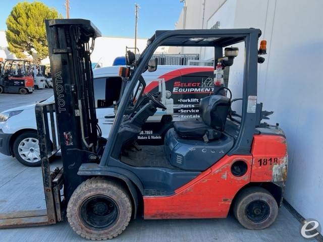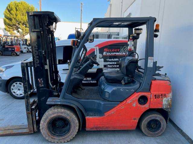 Equipment Description: General Information Model 8FGU25 Manufacturer Toyota Type Forklift Engine Engine Type Internal Combustion Fuel Type LPG Gasoline Engine Model Toyota 4Y Dimensions Overall Length approximatelyinches Overall Width approximately 45 inches Overall Height to top of overhead guard approximately 83 inches Wheelbase around 59 inches Weights Weight approximatelylbs Performance Load Capacity lbs Travel Speed unloaded approximately 11 mph Turning Radius approximately 87 inches Tires Tire Type Pneumatic Front Tires 7 00-12-12PR Rear Tires 6 00-9-10PR Brakes Service Brake Hydraulic Parking Brake Mechanical Lever Hydraulic System Auxiliary Hydraulic Flow varies Attachments Fork Length varies