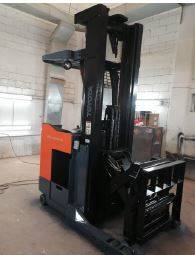 Equipment Description: General Specifications Model Number 6BDRU15 Manufacturer Toyota Type Forklift Subtype Electric Narrow Aisle Double Reach Fuel Type Electric Dimensions Overall Length Approximately 8 2 ft varies based on configuration Overall Width 3 3 ft Overall Height 7 ft Wheelbase 5 6 ft Performance Load Capacity lbs Travel Speed 6 mph Lifting Speed 60 ft min Lowering Speed ft min Gradeability 10 Power System Battery Voltage 24V Battery Capacity Ah Tires Tire Type Polyurethane Number of Wheels 3 Operator Environment Steering Type Electro-Hydraulic Seat Type Adjustable Display LCD Multi-function Display Safety Features Emergency Power Disconnect Overhead Guard Audible Alarms for Movement