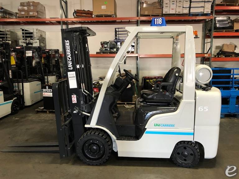 Equipment Description: General Information Model Number CFS65 Manufacturer Unicarriers Type Forklift Subtype Electric 4 Wheel Sit Down Dimensions Length to Fork Face Approximately 94 inches Overall Width 43 inches Height to Top of Overhead Guard 88 inches Wheelbase 60 inches Ground Clearance 3 5 inches Weight Service Weight Approximatelylbs Performance Load Capacity lbs Travel Speed 10 mph laden Lift Speed 65 feet per minute laden Gradeability 21 laden Engine Battery Power Source Electric Battery Voltage 48V Battery Capacity Ah Wheels Tires Front Tires 21x7x15 inches Rear Tires 16x5x10 5 inches Brakes Service Brake Hydraulic Parking Brake Mechanical Forks Fork Length Varies Fork Width 4 inches Fork Thickness 1 5 inches