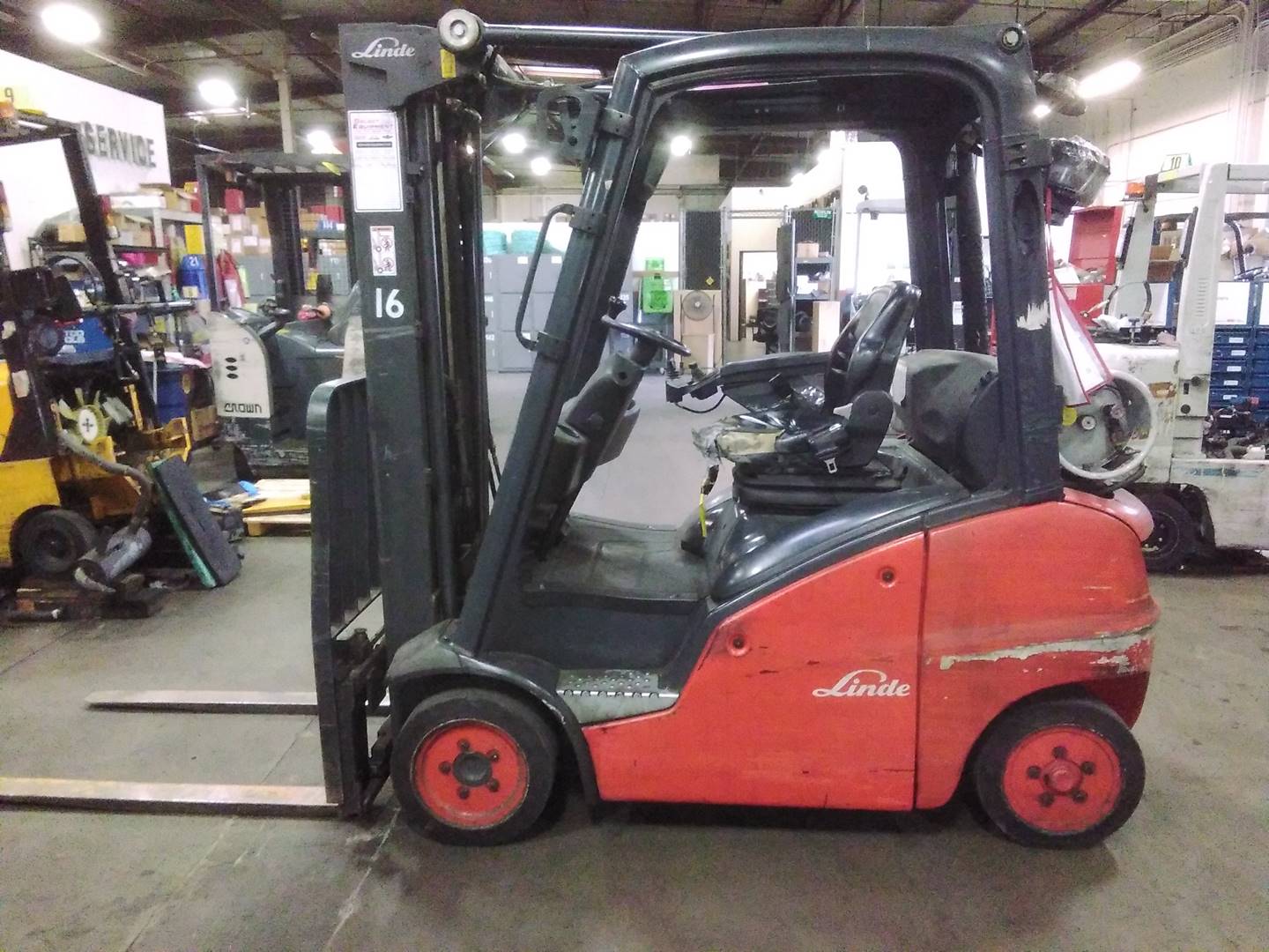 Description: Model H20CT Manufacturer Linde Type Forklift Subtype Cushion Tire 4 Wheel Sit Down Indoor Warehouse Engine Type Internal Combustion Engine Fuel Type LPG Liquid Petroleum Gas Power Output Approximately 38 HP Horsepower Dimensions Total Weight without load Approximatelylbs Overall Width Approximately 3 5 ft Overall Length without Forks Approximately 7 ft - 8 ft Overall Fork Length Varies Performance Load Capacity lbs Travel Speed Approximately 11 mph unloaded Tires Type Cushion Tires Tire Type Indoor use Operator Features Seat Type Comfort-enhanced operator seat Controls Ergonomic control levers Steering Power steering Other Features Brakes Hydraulic brakes Hydraulic System Efficient load handling