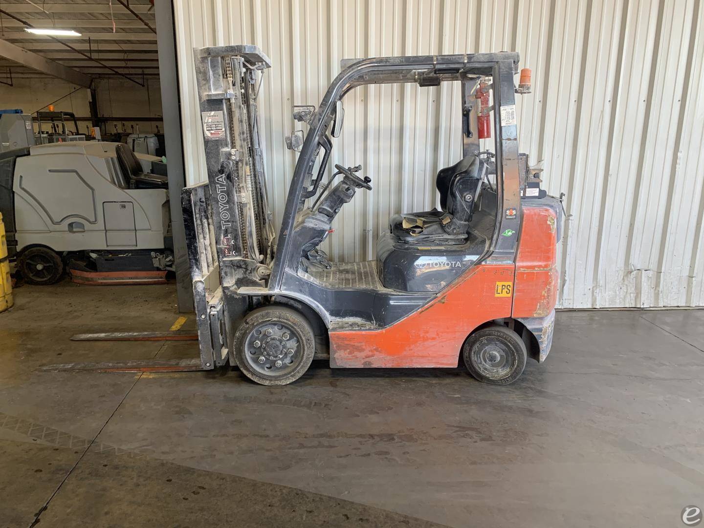 Equipment Description: Manufacturer Toyota Model Number 8FGCU25 General Specifications Power Type LPG Liquid Petroleum Gas Operator Position Sit-down Tire Type Cushion Number of Wheels 4 Dimensions Length to Face of Forks ft Overall Width Without Load 3 5 ft Height to Top of Overhead Guard 7 ft Turning Radius in Minimum Outside Turning Radius 5 5 ft Wheelbase ft Performance Rated Load Capacity lbs Load Center 24 in Travel Speed Loaded mph Travel Speed Unloaded mph Lifting Speed Loaded ft min Lifting Speed Unloaded ft min Lowering Speed Loaded 98 ft min Lowering Speed Unloaded 98 ft min Engine Specifications Engine Model Toyota 4Y Engine Type 4-cylinder water-cooled Displacement in Rated Power 51 hp RPM Torque 6 lbf ft RPM Weights Service Weight lbs Axle Loading Front lbs With Load Axle Loading Rear lbs With Load Wheel Specifications Front Tires 21x7x15 Rear Tires 16x5x10 Tread Front Rear 36 36 in Transmission Transmission Type Powershift Number of Speeds Forward Reverse 1 1 Brakes Service Brake Hydraulic Parking Brake Mechanical hand operated