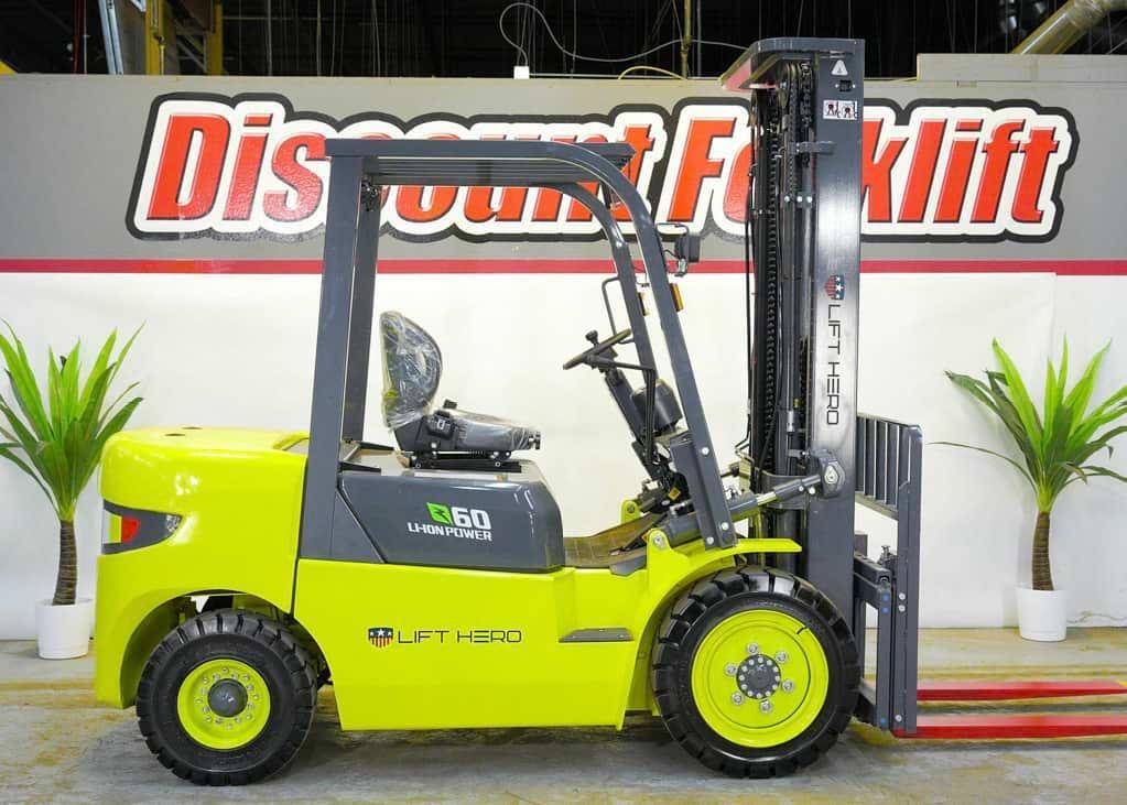 Description: Video https youtu be 6N288qNN4xQ Operators are dubbing LIFT HERO lifts the Tesla of forklifts thanks to our cutting-edge lithium-ion battery technology These batteries require no maintenance and allow for opportunity fast charging ensuring your lift can last an entire shift without interruption With completely sealed electrical components an 18-month or 2 000-hour factory warranty and a robust 5-year or 10 000-hour battery warranty you can count on efficiency and minimal downtime on the job site For added safety our forklifts are painted in bright luminous yellow with red-painted forks to enhance visibility Experience the revolution in material handling with LIFT HERO