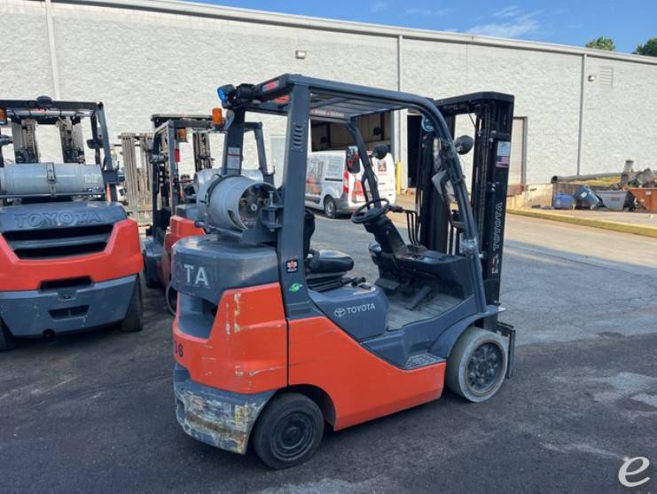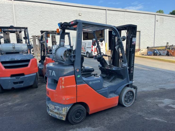 Equipment Description: Manufacturer Toyota Model Number 8FGCU25 General Specifications Power Type LPG Liquid Petroleum Gas Operator Position Sit-down Tire Type Cushion Number of Wheels 4 Dimensions Length to Face of Forks ft Overall Width Without Load 3 5 ft Height to Top of Overhead Guard 7 ft Turning Radius in Minimum Outside Turning Radius 5 5 ft Wheelbase ft Performance Rated Load Capacity lbs Load Center 24 in Travel Speed Loaded mph Travel Speed Unloaded mph Lifting Speed Loaded ft min Lifting Speed Unloaded ft min Lowering Speed Loaded 98 ft min Lowering Speed Unloaded 98 ft min Engine Specifications Engine Model Toyota 4Y Engine Type 4-cylinder water-cooled Displacement in Rated Power 51 hp RPM Torque 6 lbf ft RPM Weights Service Weight lbs Axle Loading Front lbs With Load Axle Loading Rear lbs With Load Wheel Specifications Front Tires 21x7x15 Rear Tires 16x5x10 Tread Front Rear 36 36 in Transmission Transmission Type Powershift Number of Speeds Forward Reverse 1 1 Brakes Service Brake Hydraulic Parking Brake Mechanical hand operated