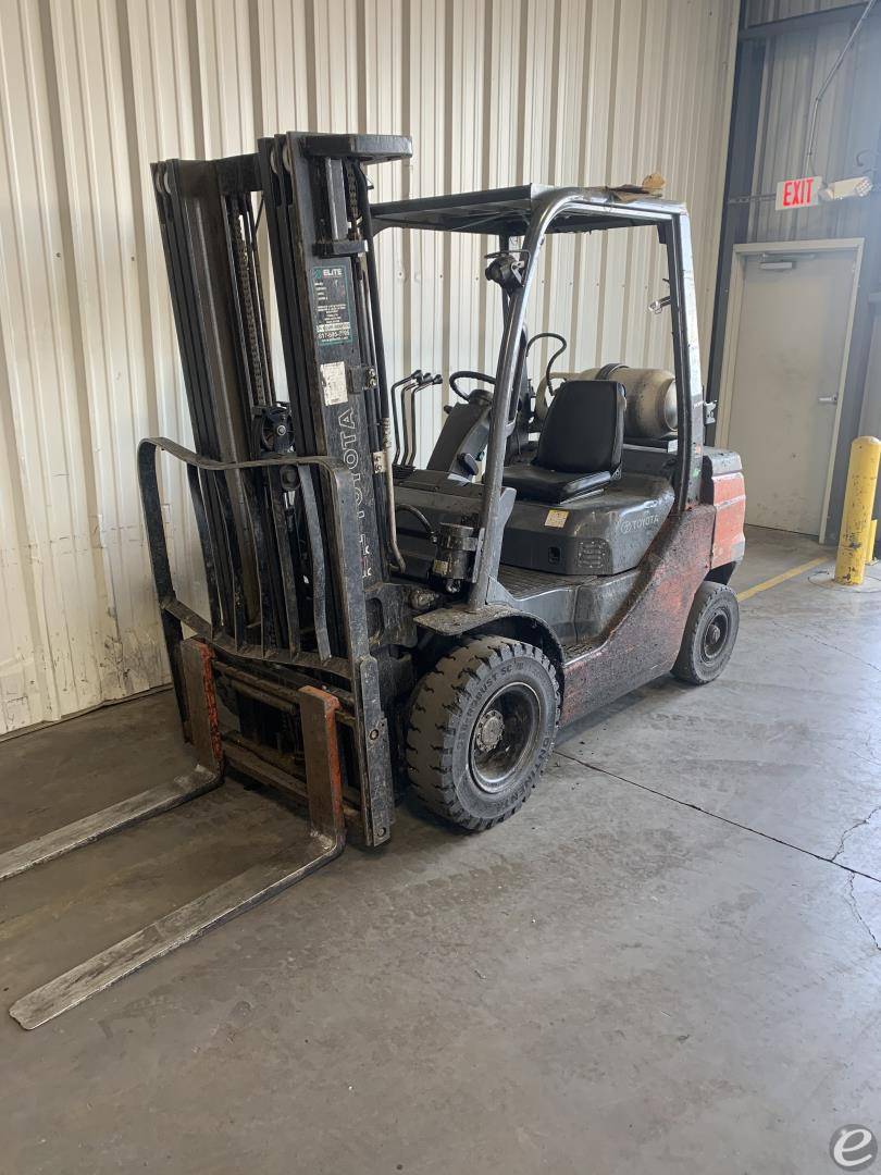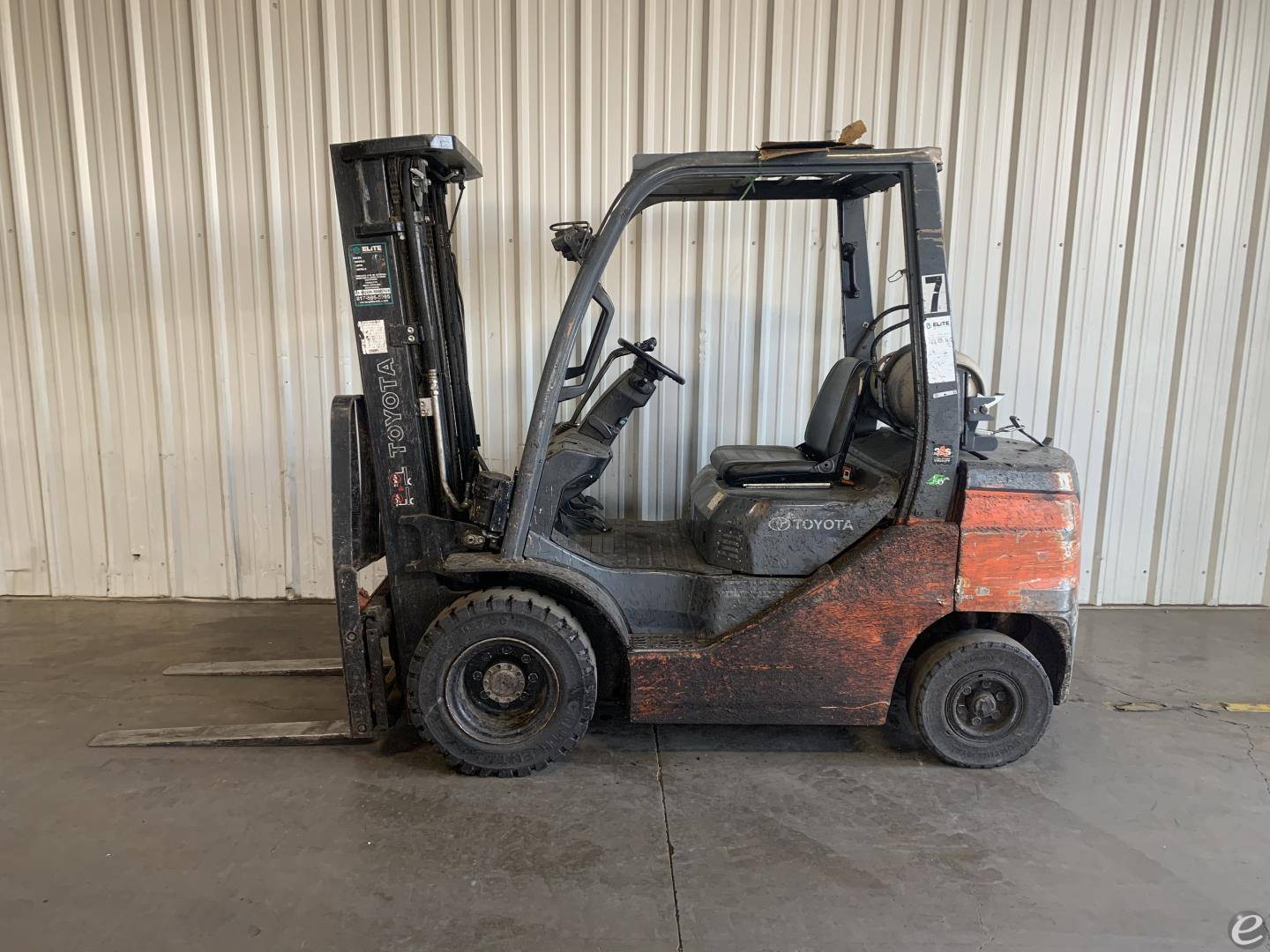 Equipment Description: General Information Model 8FGU25 Manufacturer Toyota Type Forklift Engine Engine Type Internal Combustion Fuel Type LPG Gasoline Engine Model Toyota 4Y Dimensions Overall Length approximatelyinches Overall Width approximately 45 inches Overall Height to top of overhead guard approximately 83 inches Wheelbase around 59 inches Weights Weight approximatelylbs Performance Load Capacity lbs Travel Speed unloaded approximately 11 mph Turning Radius approximately 87 inches Tires Tire Type Pneumatic Front Tires 7 00-12-12PR Rear Tires 6 00-9-10PR Brakes Service Brake Hydraulic Parking Brake Mechanical Lever Hydraulic System Auxiliary Hydraulic Flow varies Attachments Fork Length varies
