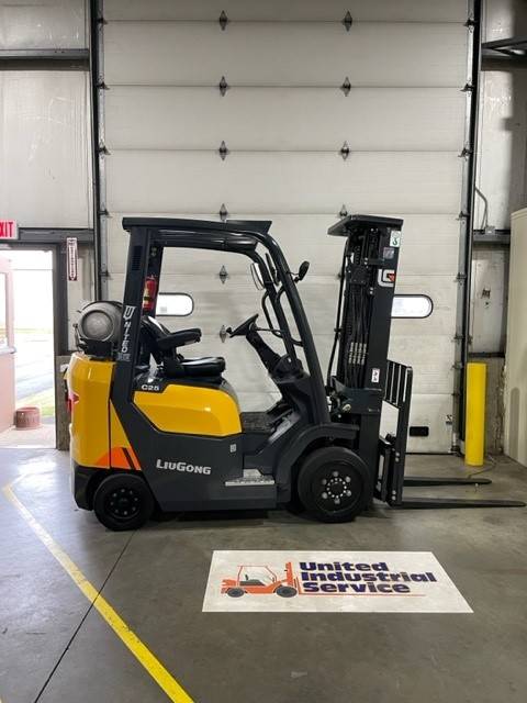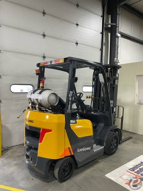 Equipment Description: Model Number CLG2025G-C Manufacturer Liugong Type Forklift Subtype Cushion Tire 4 Wheel Sit Down Indoor Warehouse Dimensions Overall Height 7 5 ft Overall Width 3 5 ft Overall Length 8 2 ft without forks Wheelbase 4 9 ft Ground Clearance 4 in Engine Engine Type Internal Combustion Fuel Type LPG Engine Power 52 HP Performance Rated Load Capacity lbs Travel Speed with Load 11 mph Lifting Speed with Load 70 feet min Gradeability with Load 20 Turning Radius 7 3 ft Tires Tire Type Cushion Number of Tires 4 Hydraulic System Hydraulic Pressure psi Forks Fork Length Varies Fork Width 4 in Fork Thickness in Brakes Service Brake Hydraulic Parking Brake Mechanical