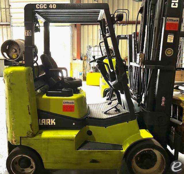 Equipment Description: Manufacturer Clark Model Number GC40 Type Forklift Subtype Cushion Tire 4 Wheel Sit Down Indoor Warehouse Fuel Type LP Gas Engine Specifications Engine Type LP Gas Engine Model Mitsubishi 4G64 Cylinders 4 Power Output Approximately 89 HP Dimensions Overall Length Approximately 98 inches Overall Width Approximately 47 inches Overall Height Cab Approximately 84 inches Wheelbase Approximately 63 inches Clearance under Mast Approximately 4 5 inches Load Handling Load Capacity lbs Fork Length Varies Tires Tire Type Cushion Front Tire Size 21 x 7 inches Rear Tire Size 16 x 5 inches Performance Travel Speed Loaded Approximately 11 mph Gradeability Loaded 25 Turning Radius 86 inches Brakes Service Brake Hydraulic Parking Brake Mechanical Additional Features Operator Compartment Ergonomic with adjustable seat Instrumentation Multifunction display including gauges for fuel engine temperature and more Safety Standard seatbelt and overhead guard
