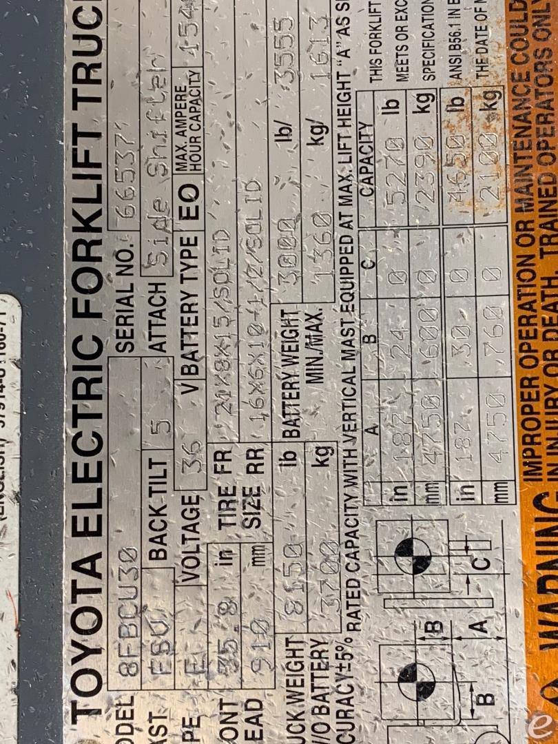 Equipment Description: lb 4-Wheel Electric Forklift CUSHION 36V SIDESHIFTER