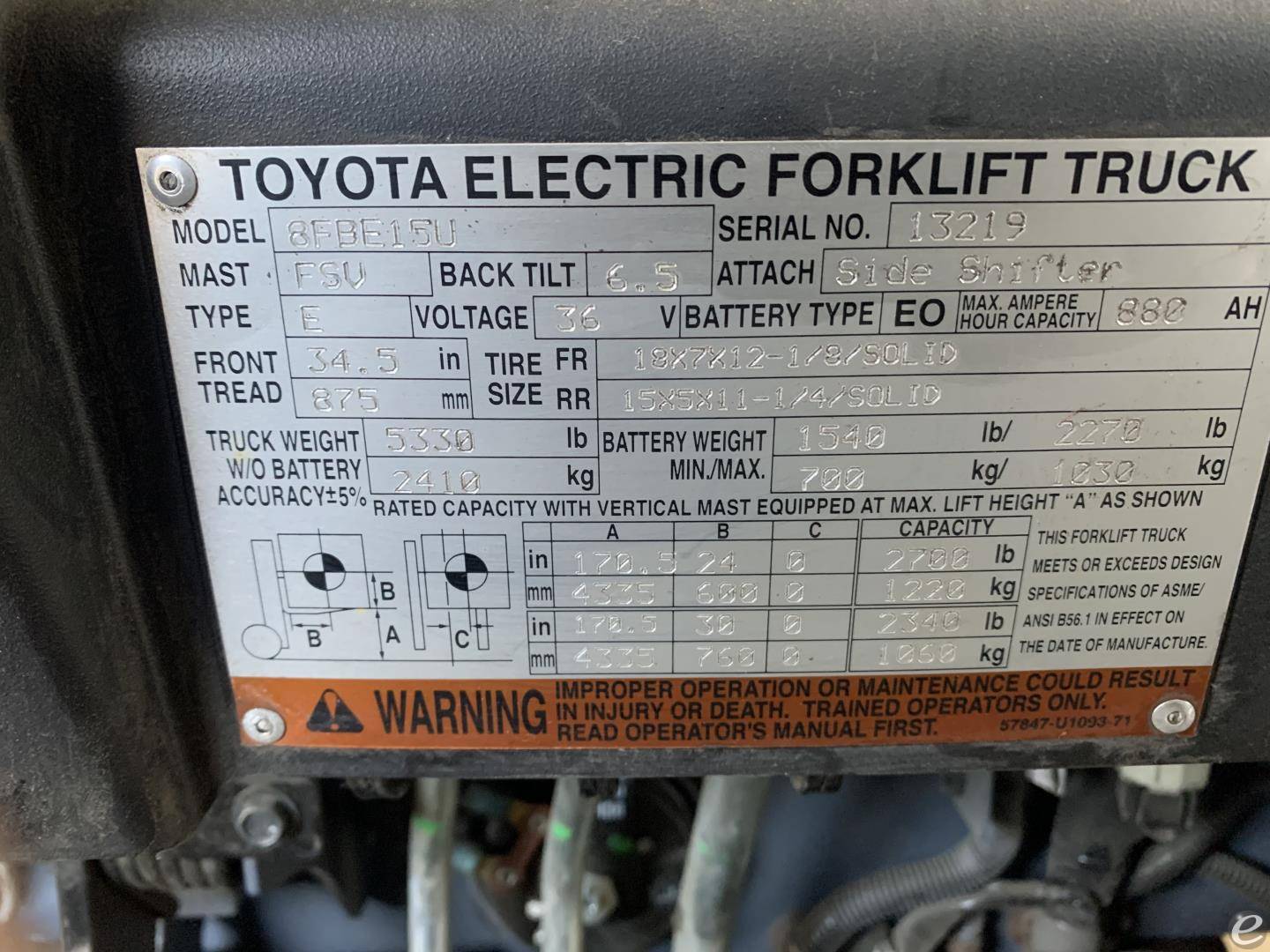 Equipment Description: lb 3-Wheel Electric Forklift CUSHION 36V SIDESHIFTER