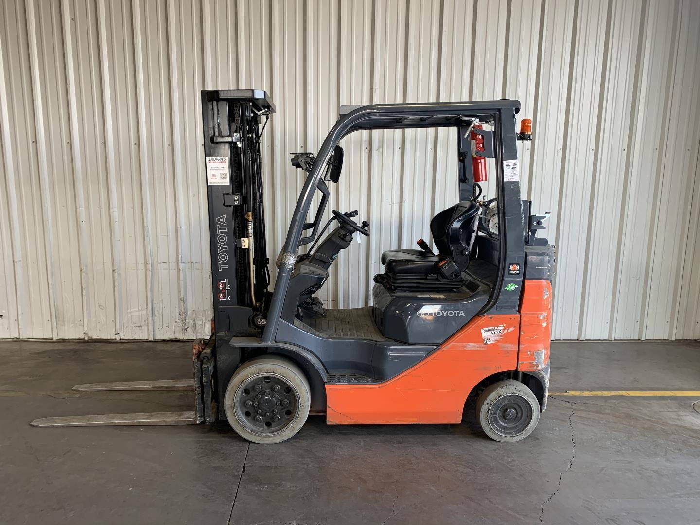 Equipment Description: General Specifications Model Number 50-8FGCU20 Manufacturer Toyota Type Forklift Subtype Cushion Tire 4 Wheel Sit Down Indoor Warehouse Fuel Type Used LP Gas Engine Engine Manufacturer Toyota Engine Type 4-cylinder Fuel System LPG Dimensions Overall Length inches Varies depending on fork length Overall Width inches Overall Height Cab inches Wheelbase inches Performance Load Capacity lbs Power Approximately 51 HP Travel Speed mph laden Gradeability Approximately 20 laden Turning Radius inches Wheels and Tires Tire Type Cushion Front Tire Size 18x7-8 Rear Tire Size 16x6-8 Operational Features Operator Position Sit Down Steering Power Steering Brake System Wet Disc Transmission Powershift