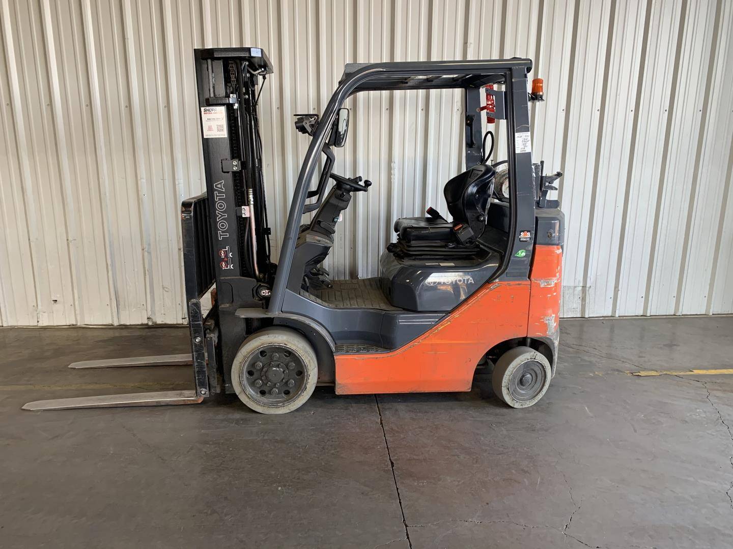 Equipment Description: General Specifications Model Number 50-8FGCU20 Manufacturer Toyota Type Forklift Subtype Cushion Tire 4 Wheel Sit Down Indoor Warehouse Fuel Type Used LP Gas Engine Engine Manufacturer Toyota Engine Type 4-cylinder Fuel System LPG Dimensions Overall Length inches Varies depending on fork length Overall Width inches Overall Height Cab inches Wheelbase inches Performance Load Capacity lbs Power Approximately 51 HP Travel Speed mph laden Gradeability Approximately 20 laden Turning Radius inches Wheels and Tires Tire Type Cushion Front Tire Size 18x7-8 Rear Tire Size 16x6-8 Operational Features Operator Position Sit Down Steering Power Steering Brake System Wet Disc Transmission Powershift