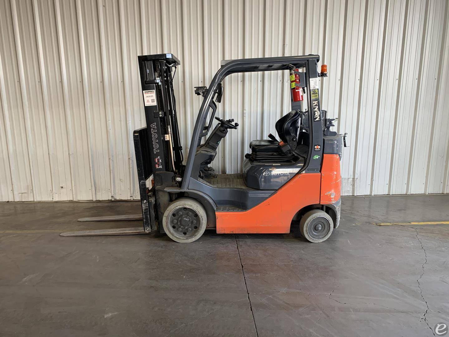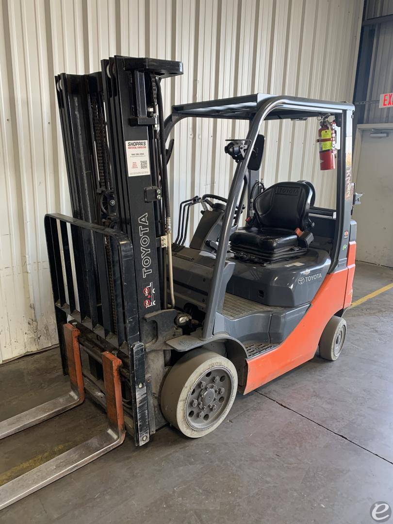 Equipment Description: General Specifications Model Number 50-8FGCU20 Manufacturer Toyota Type Forklift Subtype Cushion Tire 4 Wheel Sit Down Indoor Warehouse Fuel Type Used LP Gas Engine Engine Manufacturer Toyota Engine Type 4-cylinder Fuel System LPG Dimensions Overall Length inches Varies depending on fork length Overall Width inches Overall Height Cab inches Wheelbase inches Performance Load Capacity lbs Power Approximately 51 HP Travel Speed mph laden Gradeability Approximately 20 laden Turning Radius inches Wheels and Tires Tire Type Cushion Front Tire Size 18x7-8 Rear Tire Size 16x6-8 Operational Features Operator Position Sit Down Steering Power Steering Brake System Wet Disc Transmission Powershift