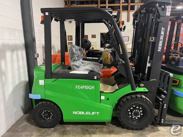 Description: Model Number FE4P50QH Manufacturer Noblelift Type Forklift Subtype Pneumatic Tire 4 Wheel Sit Down Fuel Type Electric Specifications Load Capacity lbs Load Center 24 inches Battery Voltage 80 V Drive Motor AC Electric Control Type Hydraulic Operator Position Seated Dimensions Overall Length without forks inches Overall Width 55 inches Overall Height 89 inches Wheelbase 94 inches Ground Clearance 9 inches Turning Radius inches Fork Length Varies Performance Travel Speed laden unladen 11 mph Lift Speed laden 85 ft min Lift Speed unladen 92 ft min Lowering Speed laden 95 ft min Lowering Speed unladen 90 ft min Weight Service Weight lbs Tires Tire Type Pneumatic Front Tire Size Rear Tire Size