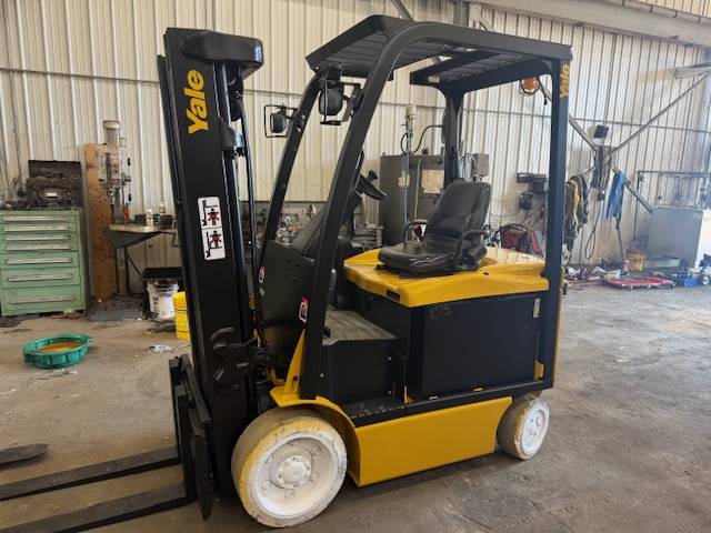 Equipment Description: General Specifications Model Number ERC050 Manufacturer Yale Type Forklift Power Source Electric Dimensions Overall Length Approximatelyinches including forks if applicable Overall Width Approximately 48 inches Overall Height Overhead Guard Approximately 87 inches Wheelbase Approximately 61 inches Ground Clearance Approximately 4 inches Performance Maximum Load Capacity lbs Travel Speed Loaded Approximately 8 mph Travel Speed Unloaded Approximately 9 mph Chassis Tyre Type Cushion or Pneumatic varies based on configuration Braking System Hydraulic Electrical System Voltage 80V Battery Capacity Capacity varies Operator Area Ergonomic Seat Yes Adjustable Steering Column Yes Display Panel Digital Multi-function