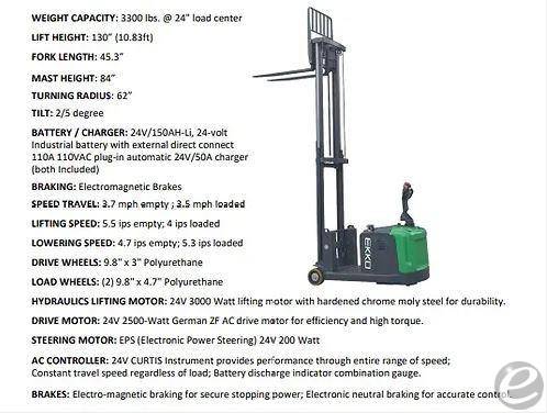 Equipment Description: All new EKKO s have a 3-year limited warranty Developed for outstanding performance the award-winning range of EKKO material handling equipment is built to a higher specification to maximize productivity and ensure utter reliability whatever the application