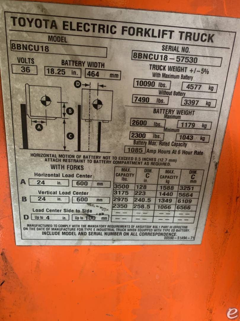 Equipment Description: lb Stand Up Electric Forklift CUSHION 36V SIDESHIFTER