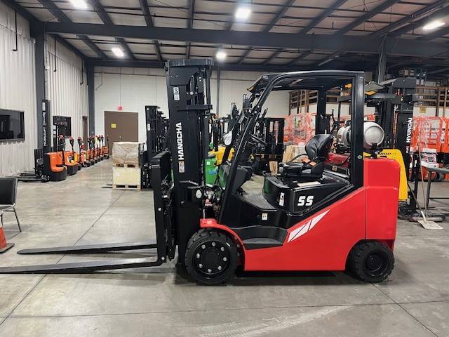 Equipment Description: Model Number FP55CB Manufacturer Hangcha Type Forklift Subtype Cushion Tire 4 Wheel Sit Down Indoor Warehouse Fuel Type LP Gas Dimensions Overall Length without forks Approx 82 inches Overall Width Approx 48 inches Height to Top of Overhead Guard Approx 88 inches Turning Radius Approx 89 inches Wheelbase Approx 66 inches Performance Load Capacity lbs Travel Speed Approx 11 mph Lifting Speed Approx 87 ft min Gradeability Approx 15 Engine Type LPG Engine Displacement Approx cu in Number of Cylinders 4 Transmission Type Automatic Number of Speeds 1 Forward 1 Reverse Tires Front Tires Cushion Tires Rear Tires Cushion Tires Brakes Service Brake Hydraulic Parking Brake Mechanical Operator s Compartment Seat Adjustable with Seat Belt Steering Hydraulic Power Steering Instrumentation Digital Display