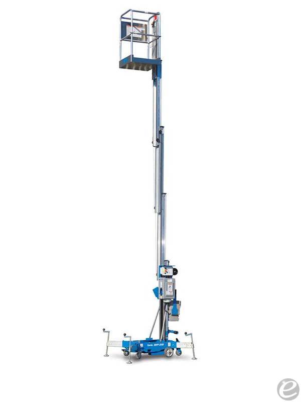 Equipment Description: New Genie AWP-20S Aerial Work Platform withlb Capacity 6 11 outrigger footprint Sliding mid-rail standard platform Auxiliary platform lowering Easy operation rolls through standard doorways Fast load into pickup trucks Ground fault interrupt Heavy-duty design and mast Outrigger storage pockets and Tie-down attachment points STOCK PHOTOS OTHER CAPACITIES OPTIONS AVAILABLE
