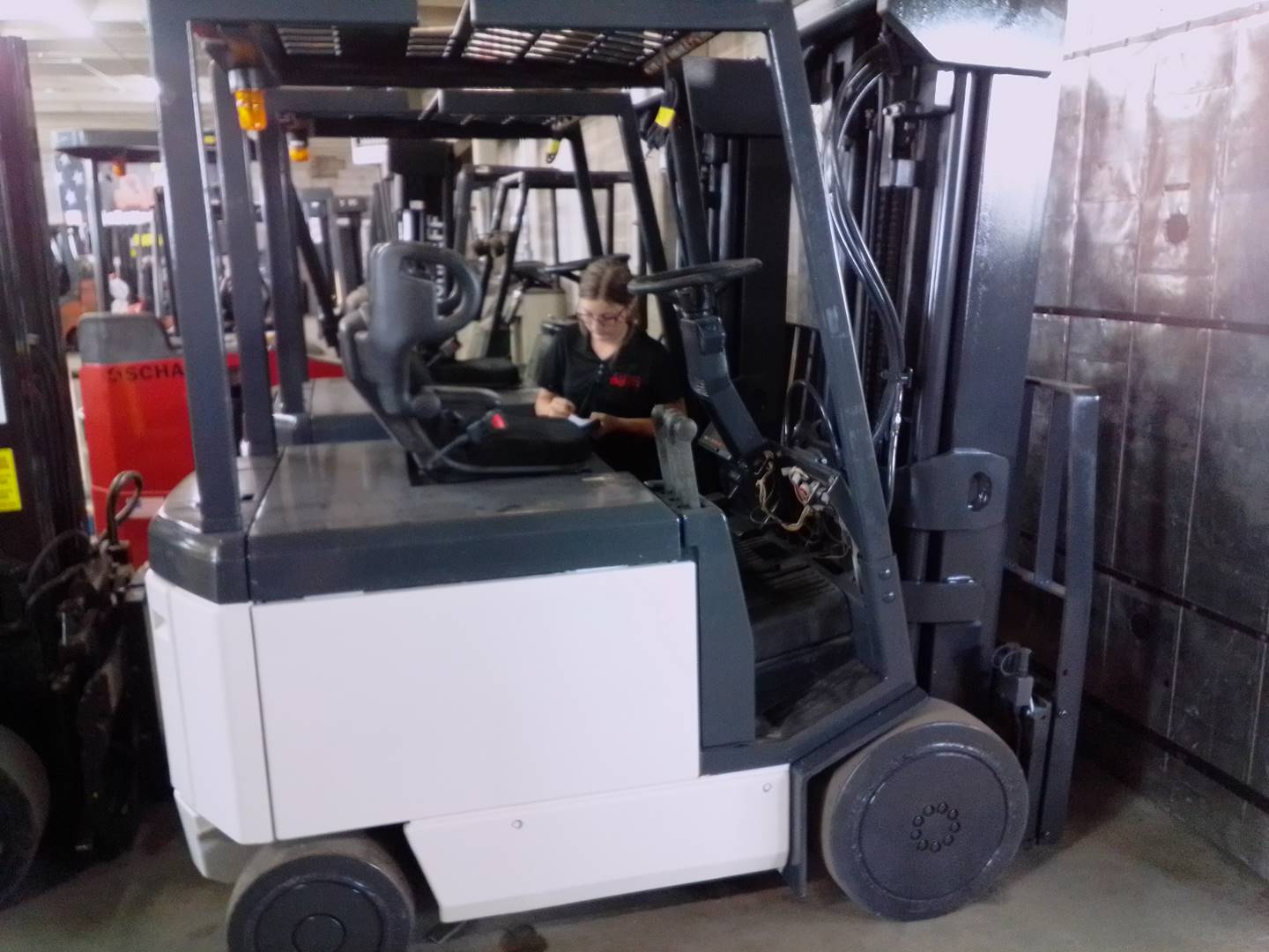 Equipment Description: D21371 Nice operating Crownlb Capacity Electric sit-down forklift 258 quad mast side-shift carriage 42 pallet forks 48volt battery and industrial 3-phase charger included New PM service and New paint job Capacity is of lift