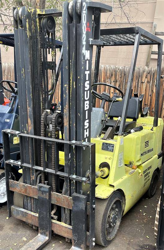 Equipment Description: NEW LOWER PRICE 2650C Mitsubishi FGC25 5K Cushion tire forklift with 189 triple stage mast 42 pallet forks smooth cushion tires Mitsubishi 4cyl LP gas engine automatic transmission New PM service and a New paint job Pictures are coming