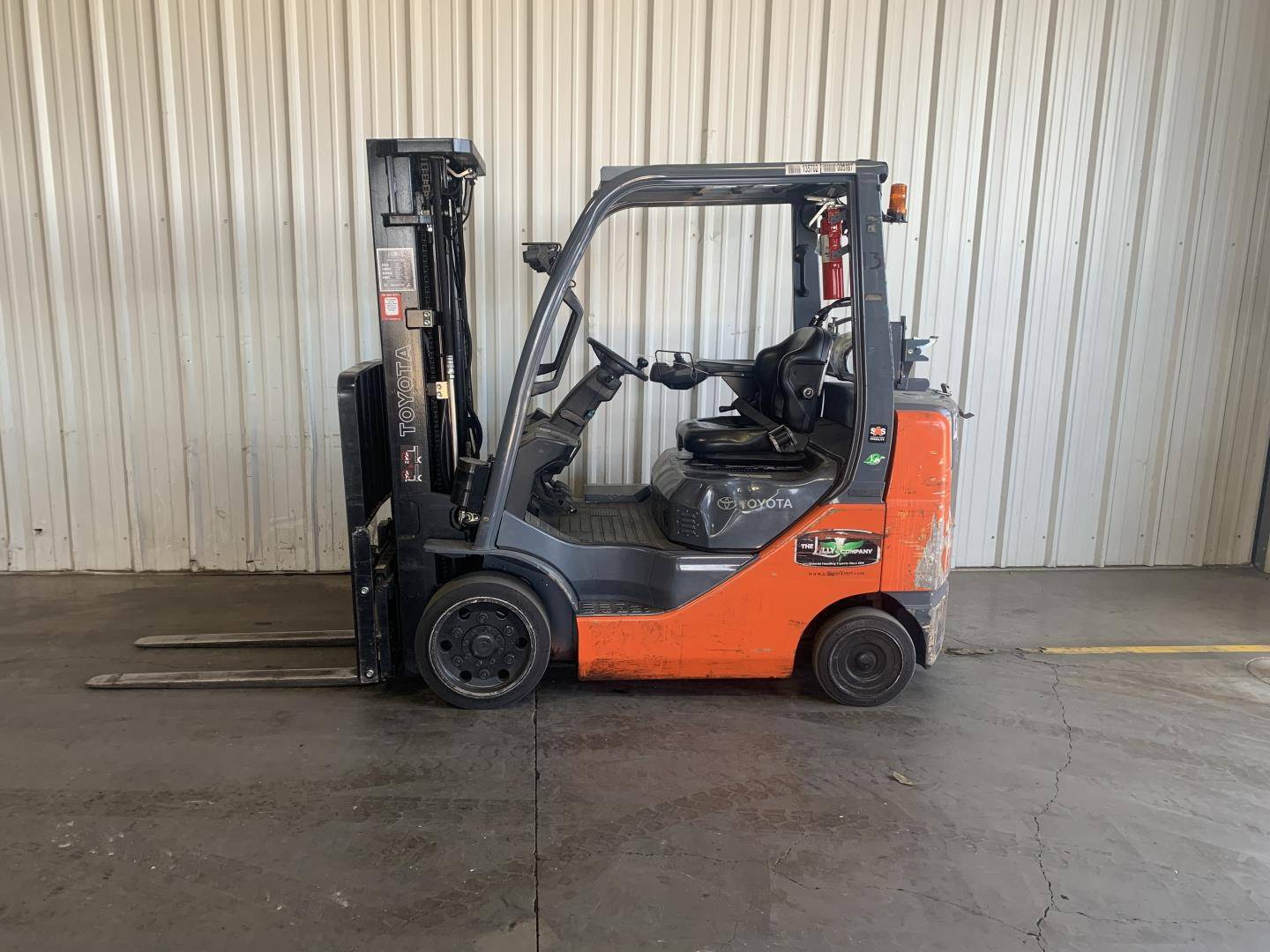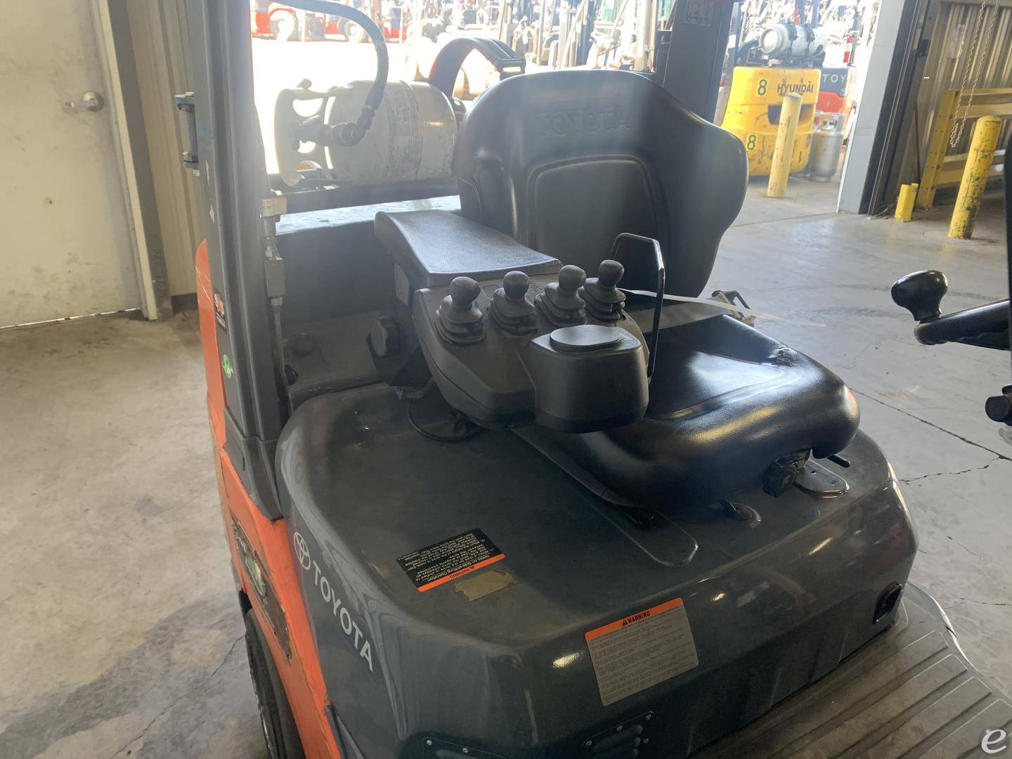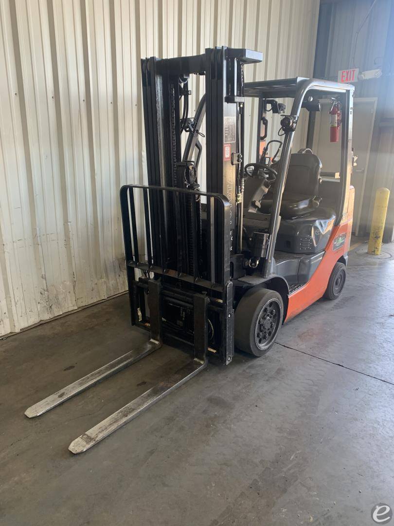 Equipment Description: Manufacturer Toyota Model Number 8FGCU25 General Specifications Power Type LPG Liquid Petroleum Gas Operator Position Sit-down Tire Type Cushion Number of Wheels 4 Dimensions Length to Face of Forks ft Overall Width Without Load 3 5 ft Height to Top of Overhead Guard 7 ft Turning Radius in Minimum Outside Turning Radius 5 5 ft Wheelbase ft Performance Rated Load Capacity lbs Load Center 24 in Travel Speed Loaded mph Travel Speed Unloaded mph Lifting Speed Loaded ft min Lifting Speed Unloaded ft min Lowering Speed Loaded 98 ft min Lowering Speed Unloaded 98 ft min Engine Specifications Engine Model Toyota 4Y Engine Type 4-cylinder water-cooled Displacement in Rated Power 51 hp RPM Torque 6 lbf ft RPM Weights Service Weight lbs Axle Loading Front lbs With Load Axle Loading Rear lbs With Load Wheel Specifications Front Tires 21x7x15 Rear Tires 16x5x10 Tread Front Rear 36 36 in Transmission Transmission Type Powershift Number of Speeds Forward Reverse 1 1 Brakes Service Brake Hydraulic Parking Brake Mechanical hand operated