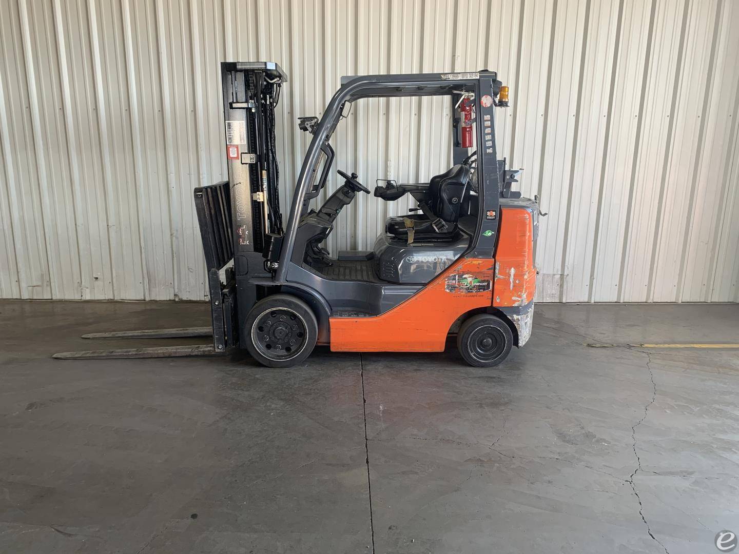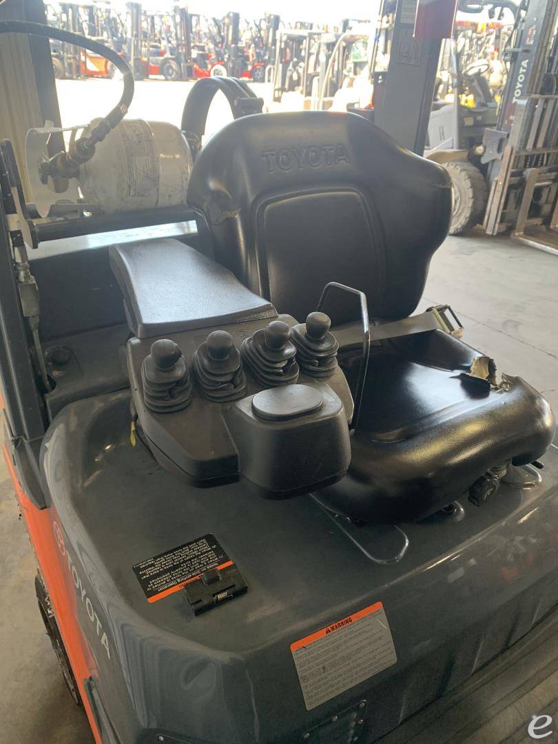 Equipment Description: Manufacturer Toyota Model Number 8FGCU25 General Specifications Power Type LPG Liquid Petroleum Gas Operator Position Sit-down Tire Type Cushion Number of Wheels 4 Dimensions Length to Face of Forks ft Overall Width Without Load 3 5 ft Height to Top of Overhead Guard 7 ft Turning Radius in Minimum Outside Turning Radius 5 5 ft Wheelbase ft Performance Rated Load Capacity lbs Load Center 24 in Travel Speed Loaded mph Travel Speed Unloaded mph Lifting Speed Loaded ft min Lifting Speed Unloaded ft min Lowering Speed Loaded 98 ft min Lowering Speed Unloaded 98 ft min Engine Specifications Engine Model Toyota 4Y Engine Type 4-cylinder water-cooled Displacement in Rated Power 51 hp RPM Torque 6 lbf ft RPM Weights Service Weight lbs Axle Loading Front lbs With Load Axle Loading Rear lbs With Load Wheel Specifications Front Tires 21x7x15 Rear Tires 16x5x10 Tread Front Rear 36 36 in Transmission Transmission Type Powershift Number of Speeds Forward Reverse 1 1 Brakes Service Brake Hydraulic Parking Brake Mechanical hand operated
