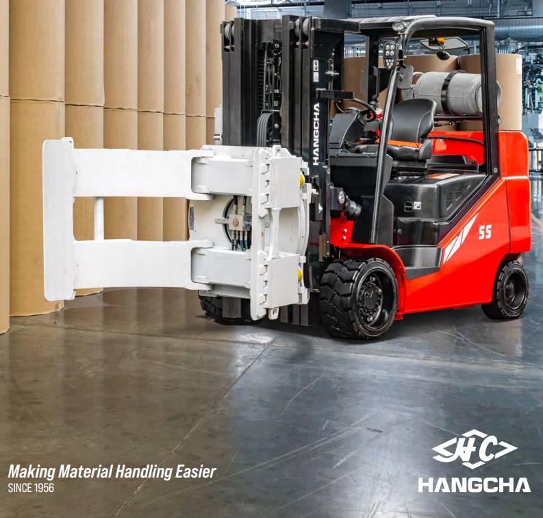 Equipment Description: New Hangcha FB55CLi 12K Cushion Paper Roll Special forklift with traction cushion tires 196 triple stage mast paper roll clamp back up alarm strobe light LED work lights rear view mirror 49 carriage panoramic mirror 4 3L LP GAS engine plus a beautiful finish STOCK PHOTOS OTHER CAPACITIES OPTIONS AVAILABLE