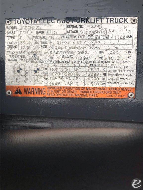 2015 Electric Toyota 8FBCHU25 Electric 4 Wheel Sit Down