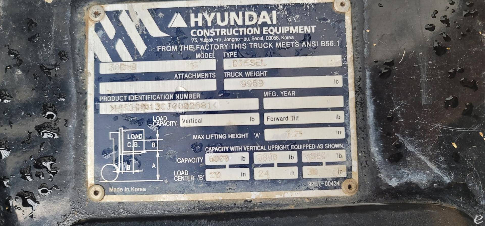 2015 Diesel Hyundai 30D-9 Pneumatic Tire 4 Wheel Sit Down