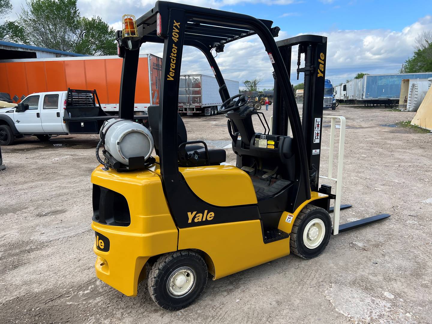 Equipment Description: 2009 Yale GLP040vxlb capacity pneumatic tire lift lpg fuel auto transmission 2 stage std mast std carriage solid pneumatic tires 48 forks new paint new seat ready to work