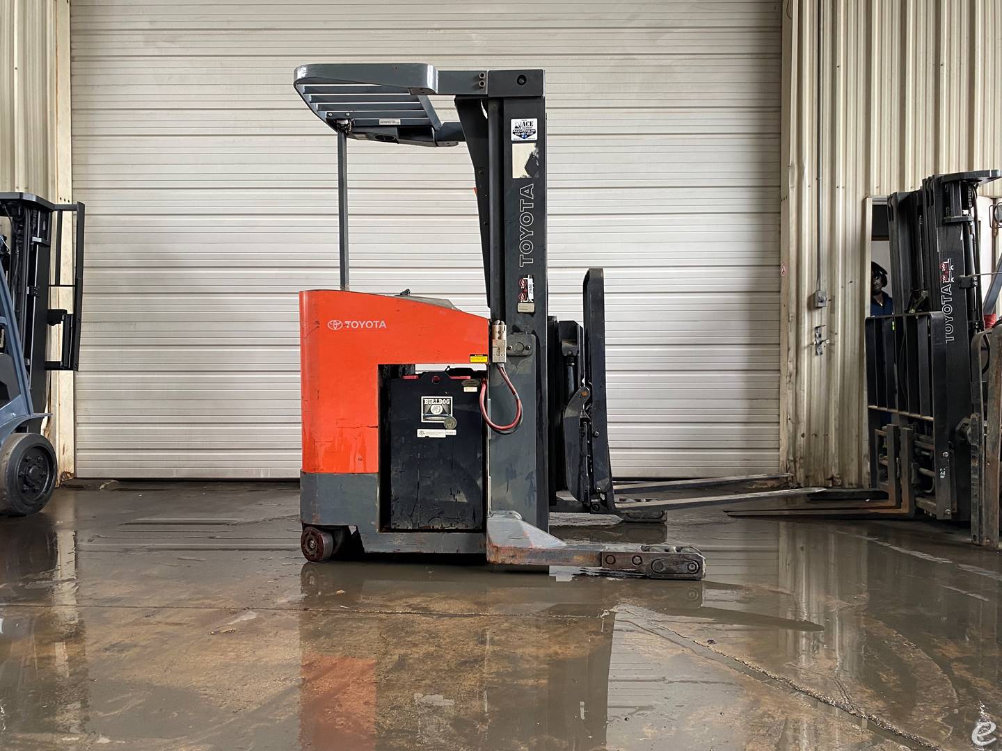 Equipment Description: General Specifications Manufacturer Toyota Model Number 7BRU23 Type Forklift Subtype Electric Stand Up End Control Docker Fuel Type Electric Dimensions Overall Length inches Overall Width inches Height to Overhead Guard inches Weight Service Weight lbs Performance Travel Speed 6 2 mph laden 6 3 mph unladen Lift Speed feet minute laden feet minute unladen Battery and Power Battery Voltage 36V Capacity Ah Steering Steering Type Electronic Power Steering Braking System Brakes Regenerative and Mechanical Additional Features Operator Compartment Stand-up with Ergonomic Controls Visibility Enhanced Visibility Mast Control Type Multi-function Control Handle