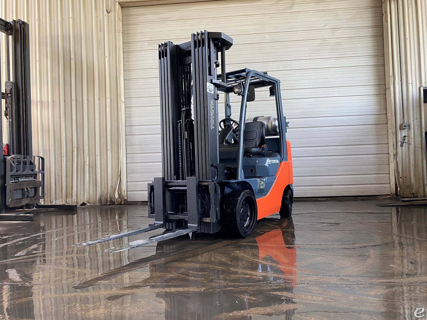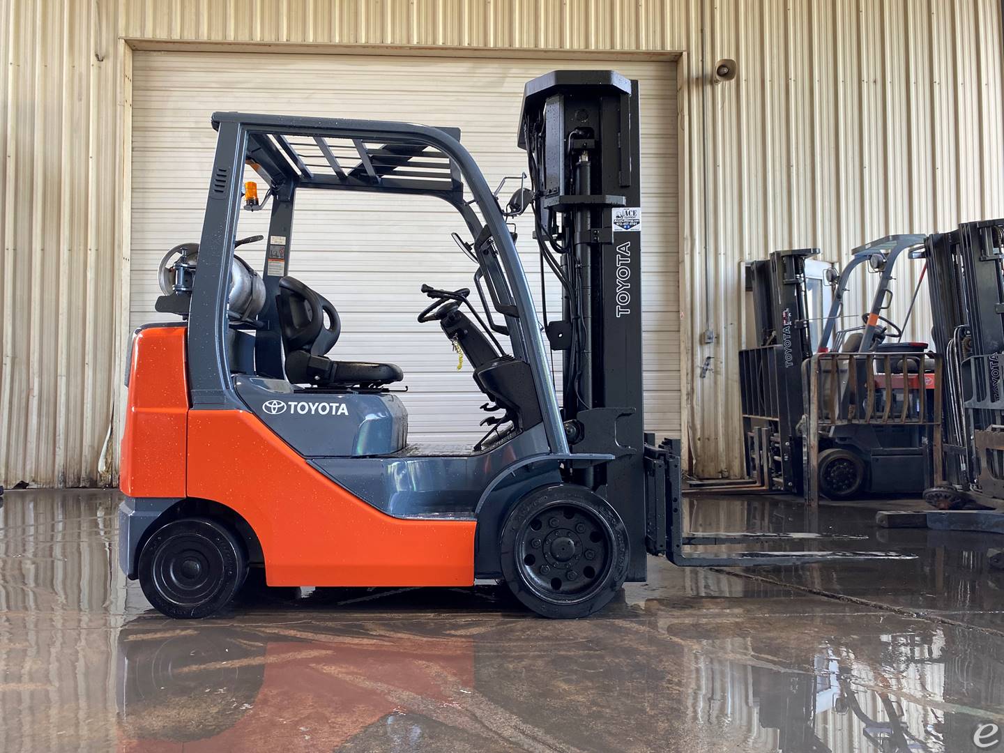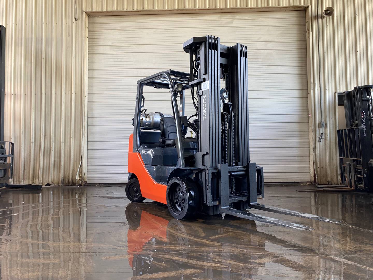 Equipment Description: Manufacturer Toyota Model Number 8FGCU25 General Specifications Power Type LPG Liquid Petroleum Gas Operator Position Sit-down Tire Type Cushion Number of Wheels 4 Dimensions Length to Face of Forks ft Overall Width Without Load 3 5 ft Height to Top of Overhead Guard 7 ft Turning Radius in Minimum Outside Turning Radius 5 5 ft Wheelbase ft Performance Rated Load Capacity lbs Load Center 24 in Travel Speed Loaded mph Travel Speed Unloaded mph Lifting Speed Loaded ft min Lifting Speed Unloaded ft min Lowering Speed Loaded 98 ft min Lowering Speed Unloaded 98 ft min Engine Specifications Engine Model Toyota 4Y Engine Type 4-cylinder water-cooled Displacement in Rated Power 51 hp RPM Torque 6 lbf ft RPM Weights Service Weight lbs Axle Loading Front lbs With Load Axle Loading Rear lbs With Load Wheel Specifications Front Tires 21x7x15 Rear Tires 16x5x10 Tread Front Rear 36 36 in Transmission Transmission Type Powershift Number of Speeds Forward Reverse 1 1 Brakes Service Brake Hydraulic Parking Brake Mechanical hand operated