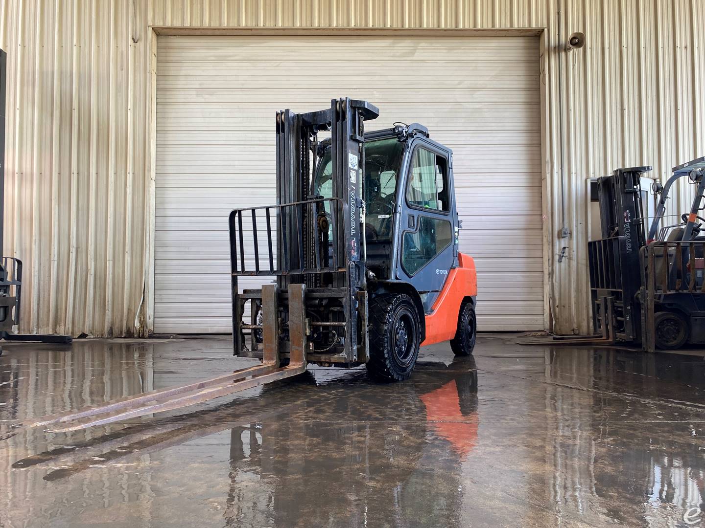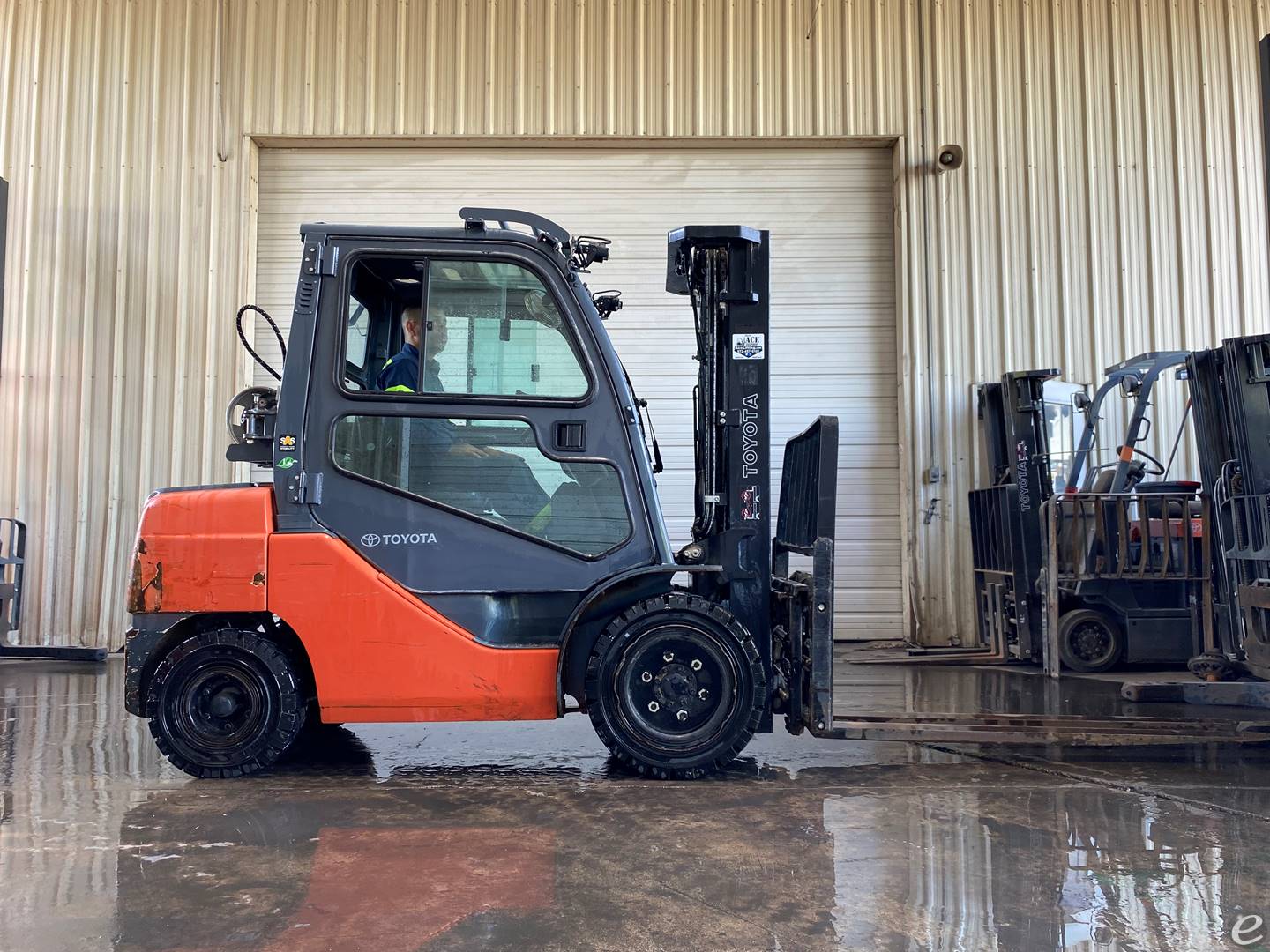 Equipment Description: General Information Model Number 8FGU30 Manufacturer Toyota Type Forklift Engine Engine Type 4-cylinder 4-cycle Fuel Type Gasoline Displacement 2 2 literscubic inches Dimensions Overall Length Approximately 95 inches Overall Width Approximately 47 inches Overall Height Approximately 85 inches without mast Wheelbase Approximately 63 inches Weight Approximate Weight lbs Capacity Load Capacity lbs Performance Travel Speed Approximately 11 mph unloaded Lift Speed Approximately 59 feet per minute unloaded Gradeability Approximately 22 unloaded Chassis Tire Type Pneumatic Brakes Wet disc Steering Hydrostatic power steering Hydraulics Hydraulic System Pressure Approximatelypsi Forks Fork Length Varies