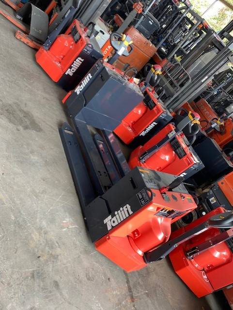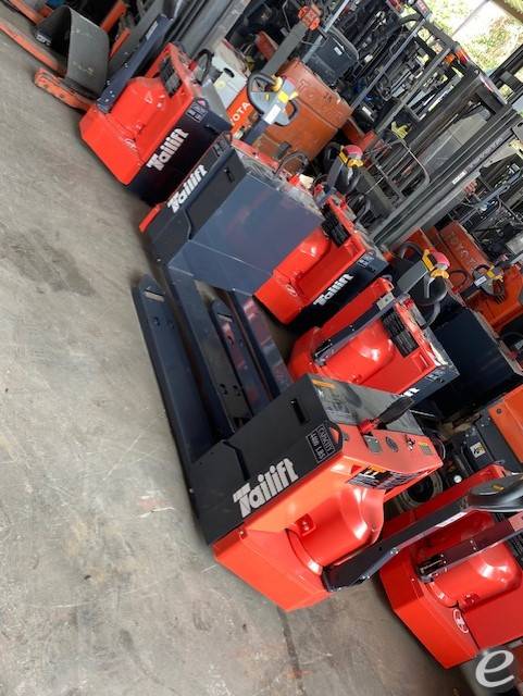 Equipment Description: General Information Model ELUT20 Manufacturer Tailift Type Forklift Subtype Electric Walkie Pallet Jack Fuel Type Electric Dimensions Weight Overall Length 63 inches Overall Width 27 inches Weight lbs Fork Length Varies Performance Load Capacity lbs Travel Speed Laden Unladen 3 4 mph 3 7 mph Lift Speed Laden Unladen 0 6 in s 0 9 in s Gradeability Laden Unladen 5 10 Powertrain Battery Voltage Capacity 24V 195Ah Drive Motor 1 5 kW Lift Motor 2 0 kW Wheels Tires Wheelbase 50 inches Front Tires Polyurethane Rear Tires Polyurethane Tread Front Rear 20 inches 24 inches Safety Ergonomics Brakes Electromagnetic Emergency Reverse Function Horn Battery Discharge Indicator with Hour Meter