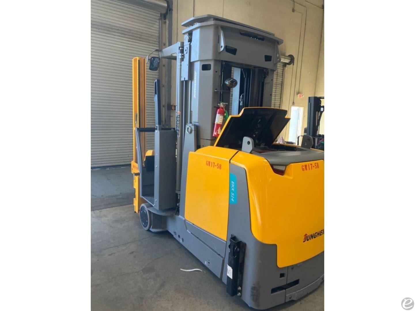 Equipment Description: 3000 CAP 80V MAN UP TURRET 177 107 MAIN MAST W 70 AUX LFT MAST DISASSEMBLED SIDESHIFT ATT 4 BATTERY ROLLERS SINGLE TRAY CRANE ARM 4PALLET DRIVE DIR B12 WIDTH OVER AXLE B2 63 1600 MM SINGLE HAND OPERATION IN AISLE ADDITIONAL LIFT CUT-OUT W OVRIDE ADDL DRIVE LIMIT W OVERRIDE AUDIBLE WARNIN SIGNAL FOR MOTION FLOOR SPOT LOAD DIRECTION BLUE FLOOR SPOT DRIVE DIRECITON BLUE DC DC CONVERTER 24V 150W REAR VIEW MIRRORS - LEFT RIGHT CLIP BOARD SYNCHRONIZED TRAVERSE OUTSIDE AISLE W FORK FLOOR PRO WIREGUIDANCE IF STD 7KHZ 100MA END OF AISLE CONTROL VIA TRANSPONDERS AREA DEPENDENT TRAVEL SPEEDCONTROL VIA WIRE GUIDANCE FREQUENCY TOGGLESWITCH F1-F2