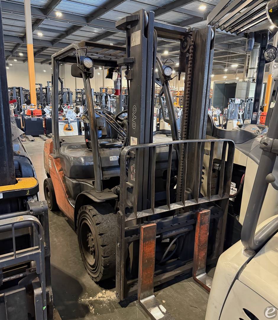 Equipment Description: We now have this Toyota 4 Wheel Sit Down available This unit comes with a Three Stage Mast and Side Shifting carriage Good working unit No leaks no codes and has been fully mechanically reconditioned Toyota 8FDU30lb CapacityHours Diesel Powered Three Stage Mast 131 Mast Height Raised Side Shifting Carriage