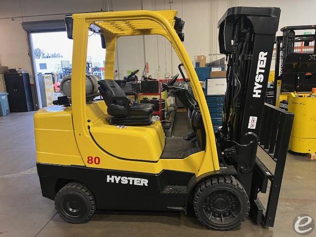 Equipment Description: General Specifications Model Number S80FT Manufacturer Hyster Type Forklift Power Source Internal Combustion Engine Engine Type Diesel or LPG Dimensions Overall Width 50 inches Length to Fork Face inches Height to Top of Overhead Guard 86 inches Wheelbase 70 inches Ground Clearance 5 inches Performance Load Capacity lbs Travel Speed 11 mph unloaded Lift Speed feet min unloaded Gradeability 25 laden Weight Service Weight lbs Tires Tire Type Pneumatic or Solid Pneumatic Front Tires 28x9-15 Rear Tires Additional Features Operator Compartment Ergonomically designed with adjustable seats Steering Hydrostatic Power Steering Braking System Hydraulic with vacuum boost