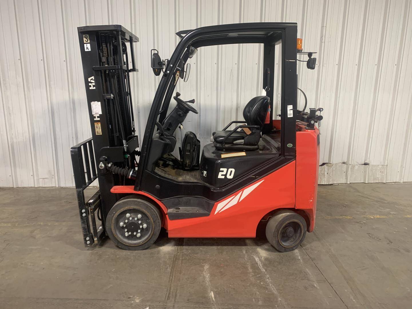 Equipment Description: Model Number FP20C Manufacturer Hangcha Type Forklift Subtype Cushion Tire 4 Wheel Sit Down Indoor Warehouse Fuel Type LP Gas Powertrain Engine Internal combustion Fuel System LPG Transmission Powershift Dimensions Overall Length inches Overall Width 43 inches Overall Height to top of overhead guard 83 inches Capacity Load Capacity lbs Performance Top Speed 11 mph Gradeability 18 loaded Tires Type Cushion Number of Wheels 4 Operator Requirements Seat Standard sit-down with adjustable features Steering Power steering Hydraulics Hydraulic Controls Fingertip controls Additional Features Safety Features Operator presence sensing system seatbelt Attachments Forks length varies