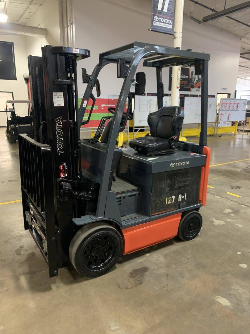 Equipment Description: General Information Model Number 6BPU15 Manufacturer Toyota Type Electric Forklift Operator Compartment Stand-Up Rider Designed for ease of access and comfort Intuitive control layout Dimensions Overall Length Approximately 72 inches Overall Width Approximately 40 inches Overall Height Varies with overhead guard Wheelbase Approximately 55 inches Fork Length Varies Engine Battery Power Source Electric Battery Type 24V industrial battery Battery Capacity Varies by configuration Performance Load Capacity lbs Travel Speed Up to 6 mph unloaded Lift Speed Approximately 50 ft min Gradeability Approximately 10 loaded Tires Tire Type Cushion Tire Configuration Single drive tire and single steer tire Safety Features Automatic Height Selector Automatic and Manual Slow Down when cornering Low step height for easy entry and exit