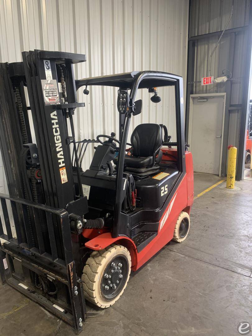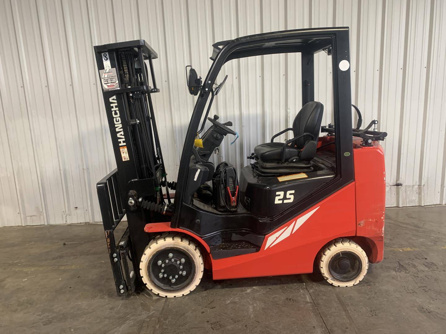 Equipment Description: General Information Model Number FP25C Manufacturer Hangcha Type Forklift Subtype Cushion Tire 4 Wheel Sit Down Indoor Warehouse Fuel Type LP Gas Dimensions Overall Length Approximately 95 inches varies with fork length Overall Width Approximately 42 inches Overall Height Overhead Guard Approximately 83 inches Wheelbase Approximately 58 inches Ground Clearance Approximately 3 5 inches Powertrain Engine Type Internal Combustion Engine Fuel System LP Gas Transmission Type Powershift Performance Load Capacity lbs Travel Speed Loaded Unloaded Approximately 11 12 mph Gradeability Loaded Approximately 20 Wheels and Tires Tire Type Cushion Number of Wheels 4 Brakes Service Brake Hydraulic Parking Brake Manual Mechanical Operator Environment Seat Adjustable Steering Power Steering